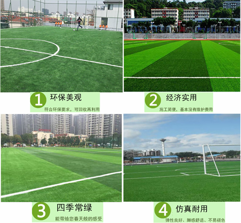 人造草坪有外观鲜艳、四季绿色、生动、排水性能好、使用寿命长、维护费用低等优点。
